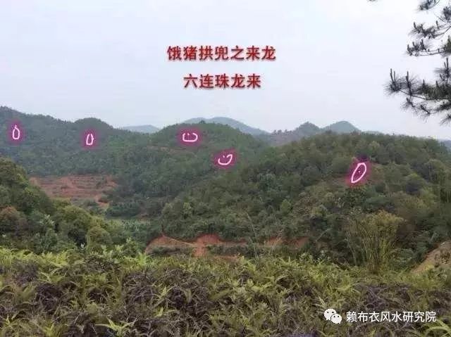 龙势两旁护从,左右两边襟带水随龙顺势而来,合一弯环关锁流出外局。其穴喝形“饿猪拱兜”,形气活现十分逼真,山身如猪,穴前一案,如喂猪之食兜,左右两小山围护如猪之长耳,前塘水泉常驻,止龙收气。其穴安于鼻孔之上。左有雄狮来朝,前爪伸出关拦水口第一重,右有大象鼻子前伸作第二重锁水口,蜿蜒流淌当堂相朝两水合一聚出口,多个弯环转曲有关有锁合而流出外局。