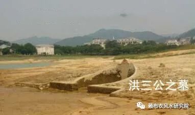 前些年,由于数月的干旱,才造成芙蓉幛水库库容严重减少,水位不断降低,至使得深藏水库底四十多年的太平天国领袖洪秀全的祖坟洪公三的墓才得以显露出来。洪秀全的祖坟墓没有特别之处,同花都区民间普通墓式一样,青砖灰缝构筑,经水浸30多年,墓仍完好无损。碑文右上方刻“嘉庆二十年秋月吉日重修”,中间刻“清显考讳沿三洪公大人之墓”,左下方刻“祀男英经、英纶、英缄、英纬;孙会玄同立”字样。嘉庆二十年(1815年)正是洪秀全出生的第二年,洪沿三是洪秀全的高祖。
