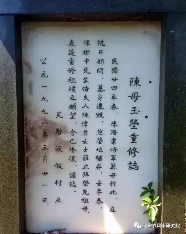 据传,当年风水师对陈说:“洪秀全祖坟其实并未葬得真穴,我点真穴于你,你数月内便可统一全国!”于是陈修完母坟,即刻反蒋。但很快就失败,后辗转去了香港、台湾。