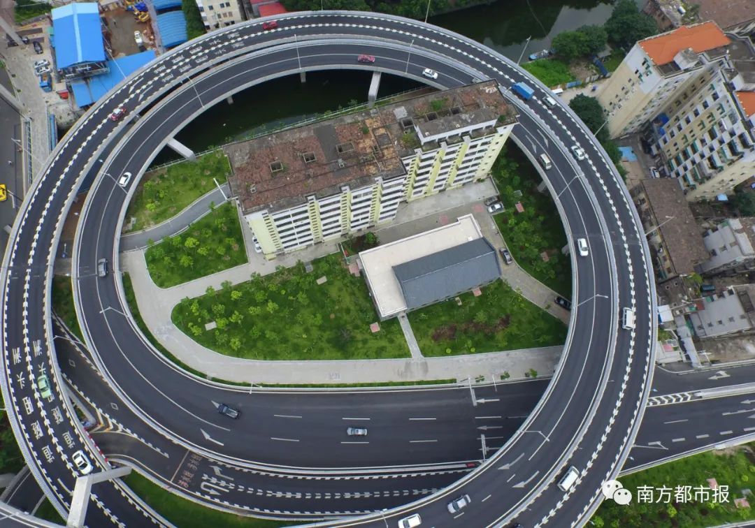 广州公共设施避开拆迁户的例子,其实不止“桥中屋”这一例,还有一个著名的“圈中屋”。