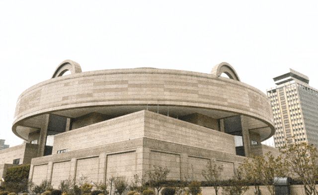 方正的基座加上圆形的博物馆主体,天台上再嵌个方孔,天圆地方的理念体现无疑。更有趣的是,上海博物馆在方圆之外,还有其他辅助手段。它的设计中还有一件“重器”——鼎。