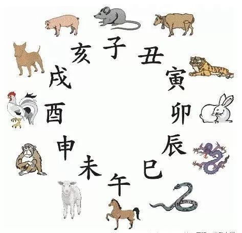 子鼠、丑牛、寅虎、卯兔、辰龙、巳蛇、午马、未羊、申猴、酉鸡、戌狗、亥猪