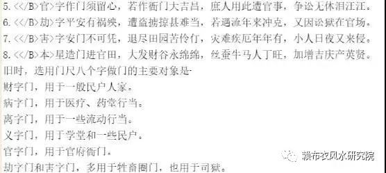 在旧时代,选做的八字门,只有选在“财”和“义”二字门的尺寸上,这“财”和“义”尺寸可以用在高度上也可以用在宽度上;而其它六个字门的尺寸,只能用在宽度上,不准用在高度上!也就是说,选用八字门的尺寸,以“财”和“义”二字门的尺寸为吉。