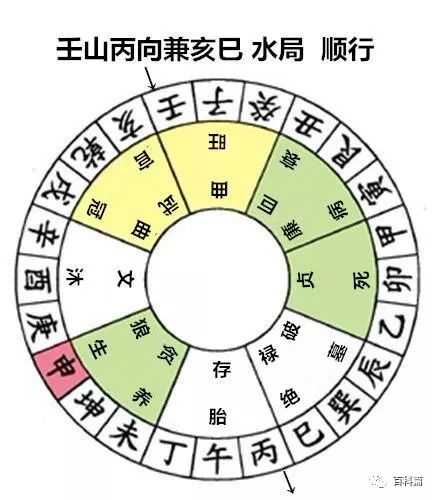 子为祖母壬为孙、夫妇失偶不合配也,阴阳驳杂,寅午戌年防火灾丁财退败。若得借库消水,卯乙辰巽四位山峰高耸及有水来朝,为引贵来朝堂,主后人聪明,少年得志,房房财丁大旺。丙午方山势高辅,坤申方、长生方贪狼星居后之生气,必主官封万户候、万倾良田,名振一方;卯乙两位峰峦尖秀,主后人男清女秀,利科甲,催官发福;庚申方有文笔峰,定出科举贵人贵。