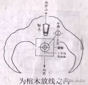 四、放线定向分金,确定好立什么坐向之后,造葬前先放线定向再开穴,下棺后再拉线定棺材内分金,立碑定外分金。