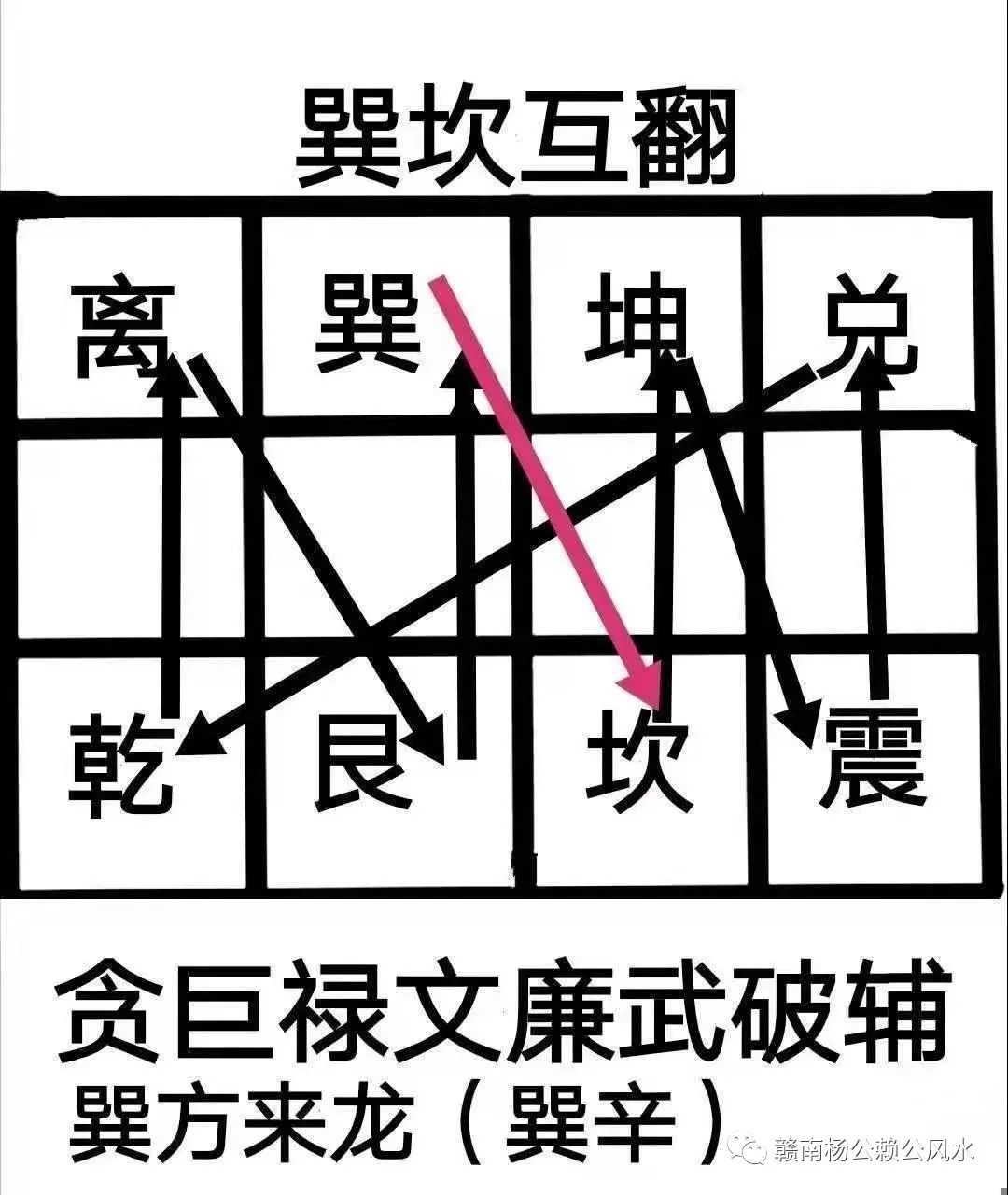 4、巽辛龙——立乾甲向,开坤乙门路,是巨门带财来。