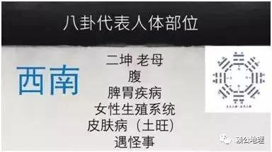 西南方是这样的,如果你家开南窗你就比较容易纳到西南气,那西南方容易伤到腹部,患脾胃病、生殖系统、皮肤病、容易生肠胃疾病,还有就是怀胎生小孩流产都跟纳西南气特别有关。我之前去看一个企业家,他有一个老中医的师父,他就把他家户型图发给那个老中医,他和老中医说他老婆一直怀不上孩子,老中医看完说你家这个房子怀不上孩子。这个老总和我很熟,关系特别好,让我去看,他家问题主要就是纳到西南气,床离南窗太近,他问怎么改,我建议把床向后挪就解决了,纳不到西南气之后他老婆顺利怀孕也没有流产。西南卦是坤卦,和老母有关,所以如果你家有年纪比较大的女性,纳到西南气,肠胃类疾病、肚子就会特别不舒服,如果再有一些风水上的形煞肚子就会有开刀的问题。