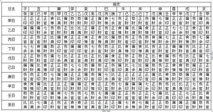 八字万能速查表