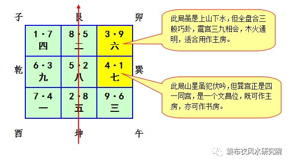 三九组合,三碧之木生九紫之火,木火通明,聪明文采。四九组合,亦是木生火旺,但可惜的是四九均为阴星,故不若三九相会。