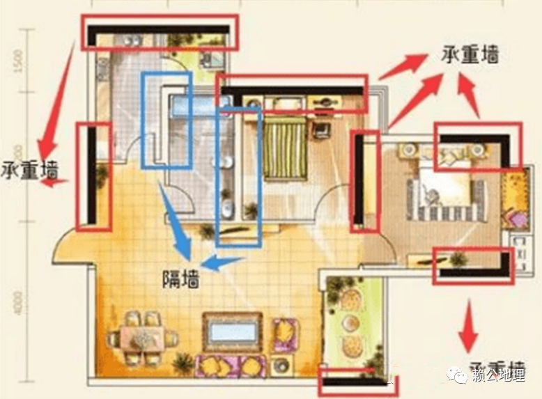 墙体一般分为承重墙和隔墙。很多人买了房子之后,可能会想要改造原有的户型格局。这时候要注意户型图上的标注了。