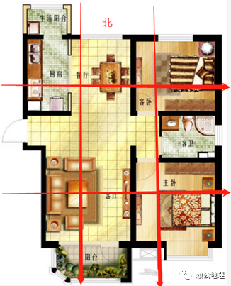 2、北有窗,而且是客厅与卧室双窗在北,北边空出来的太多,是没有背景助力和帮自己的贵人,家主人肾不好。