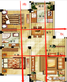 第二步:看缺角。整套房子的所有面积都要打进去,包括阳台,这样就可以看清楚到底是什么方位多、什么方位少和缺角了。还要看整个户型及每个格子里的形状,比如示例图,东边卫生间和玄关被一分为二个宫位了;正东缺角,是缺的一个L型,一半卫生间,还有一点玄关,卫生间不是干净的地方,儿子一半不是个好人,是个乱人。卫生间是排泄的地方,儿子不顾家,必会大手大脚的败家。玄关是门门的挡风处,只有一小点,他的心不在家,在家呆一半,在外呆一半。