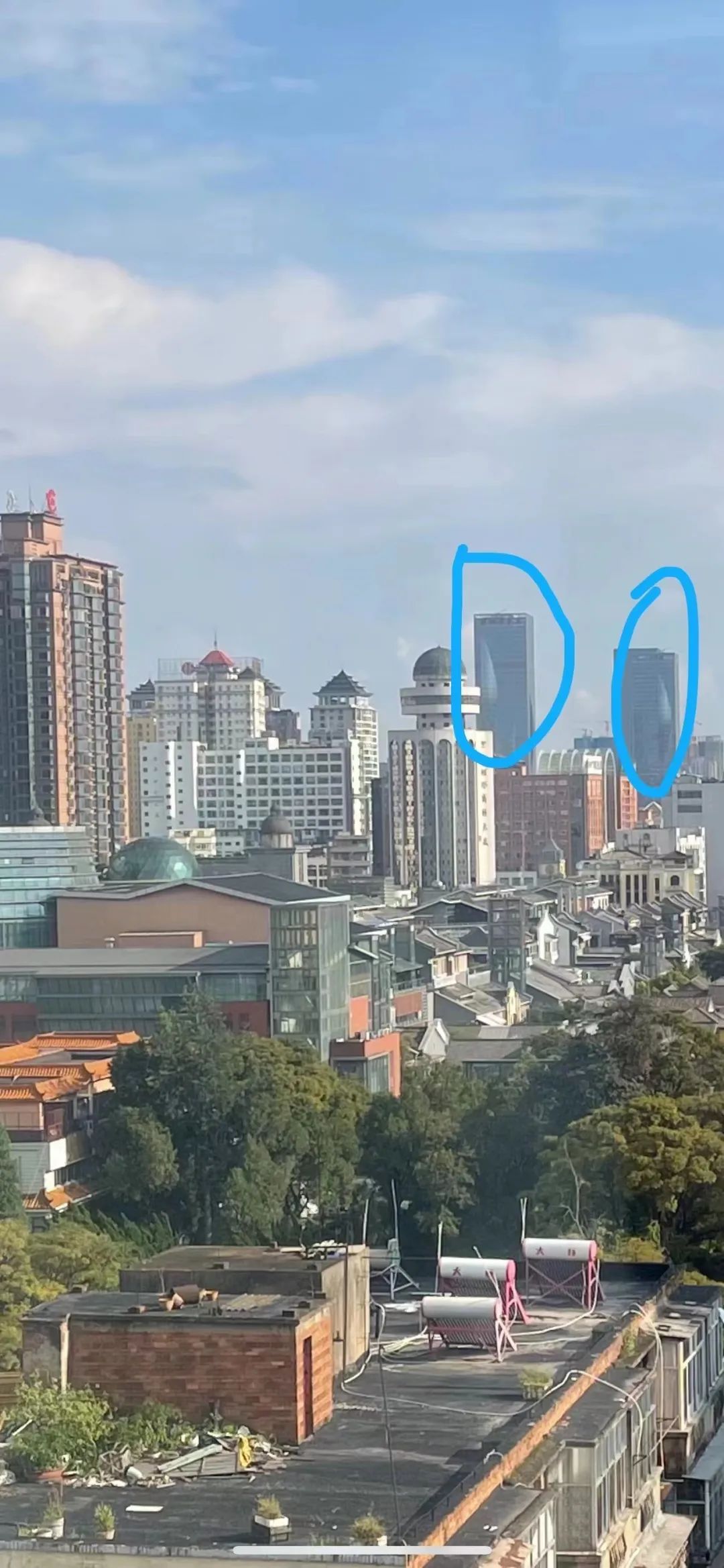 除了工业开发区以外,一些老学校或老小区的水塔也可以算做冲天煞,因为水塔也是和烟囱一样竖直立起的建筑物;