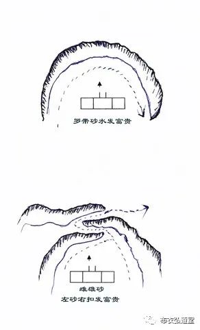 若是东南西北水射腰,房房横死绝根苗。有龙虎齐备之宅。出人男女聪明秀丽之家。宁可龙虎或有缺,最忌门前堂气泻无收。局不取阔而取聚,砂不论格而论情,山不论高秀为奇,水不论大湾为妙。总的一句说话,砂水气聚能发富,客水代代出穷丁。下面讲常见各种砂势的格局,送水砂出穷丁。斗讼砂出人凶残,兄弟不和,卓水砂发富贵,龙虎牵连砂,大发富贵。罗带砂,发富贵。雌雄交扣砂发富。前面有峰,有挡砂为贵,无挡砂为杀。前面水直来,有挡砂为贵,无挡砂为贱。