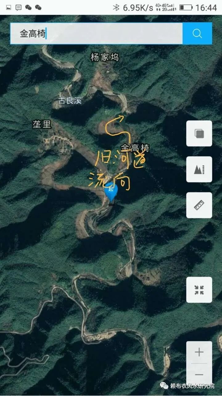 打开卫星地图,古良溪边,金高椅往下游不到一公里便是杨家坞。如今早已没有杨姓人居住,只有此地名还在。当年杨公把此风水宝地葬下之后,必然派后人把守祖坟。在陵边一公里不到的地方便自然有了杨家坞之村落。古人一般都会在祖陵边建房守祖,时间久了便成村落。我四姨父是前程人,二十多年前到他家做客。听他说祖祖辈辈一直传古良溪里有杨家将先人的居住地,后来从这里迁出去的。当时我还在心中嘀咕:四姨夫是在胡绉,杨家将怎么跟这里搭毛线关系!如今想来,传说都不是空穴来风。