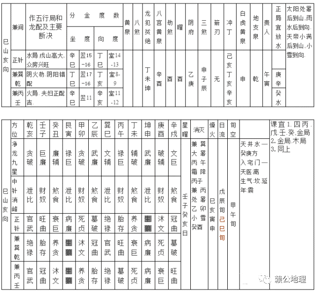 11.阴府---指四柱天干(化气五行)与坐山(斗首五行)相克。附:子卯乾艮为活阴府;午酉坤巽为死阴府。